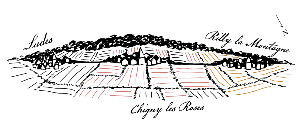 Chigny-les-Roses est un cru identitaire du Domaine. Son Terroir est unique, irrigué par des sources naturelles riche en minéraux, exposé face Nord de la Montagne de Reims.