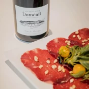 Le soupçon de chardonnay fait vibrer le fruité du meunier et l’intensité du Pinot noir.
