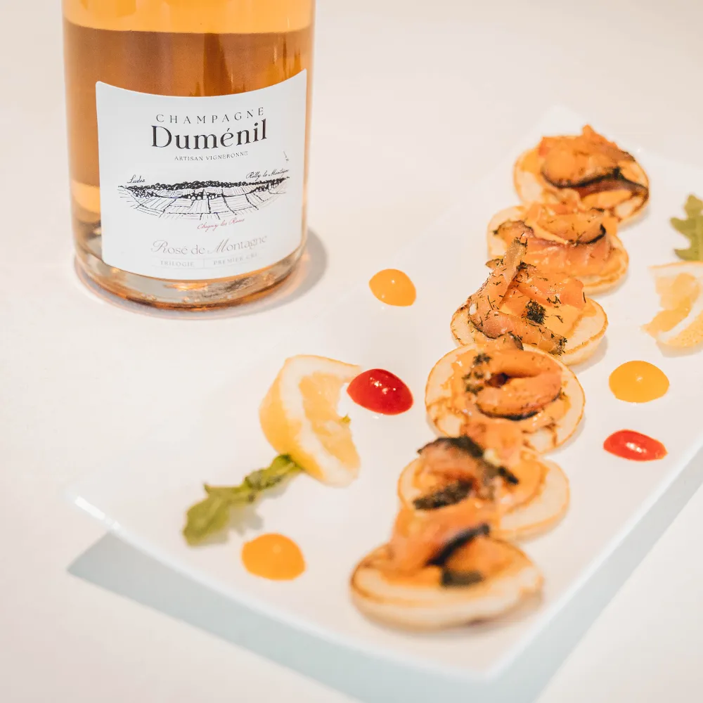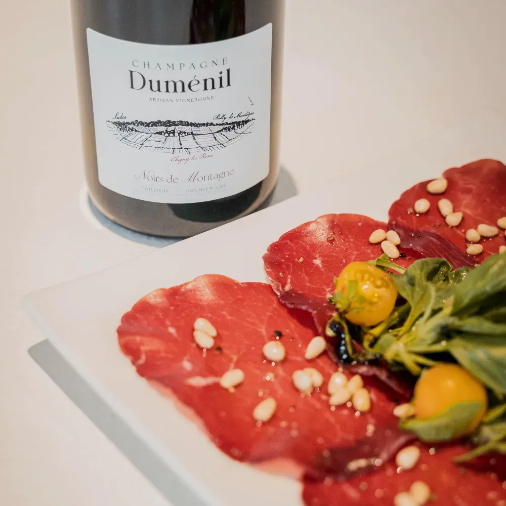 The hint of Chardonnay brings out the fruitiness of Meunier and the intensity of Pinot Noir.