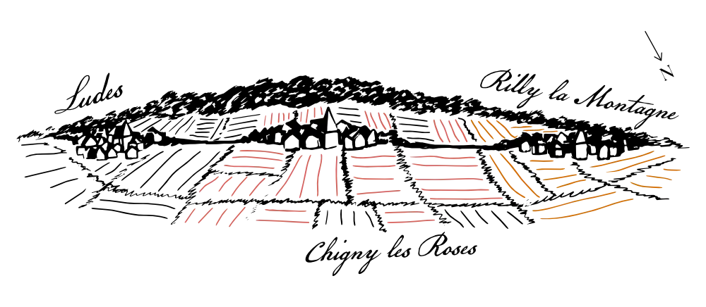 Our vineyard is located in the heart of the Montagne de Reims. Our 8 hectares of vines are classified among the Premiers Crus of Champagne. Located in Chigny-les-Roses, Rilly-la Montagne, and Ludes, we have 29 different plots that guarantee aromatic richness. The north-facing exposure of the mountain ensures a coveted coolness. The forest plays a role: